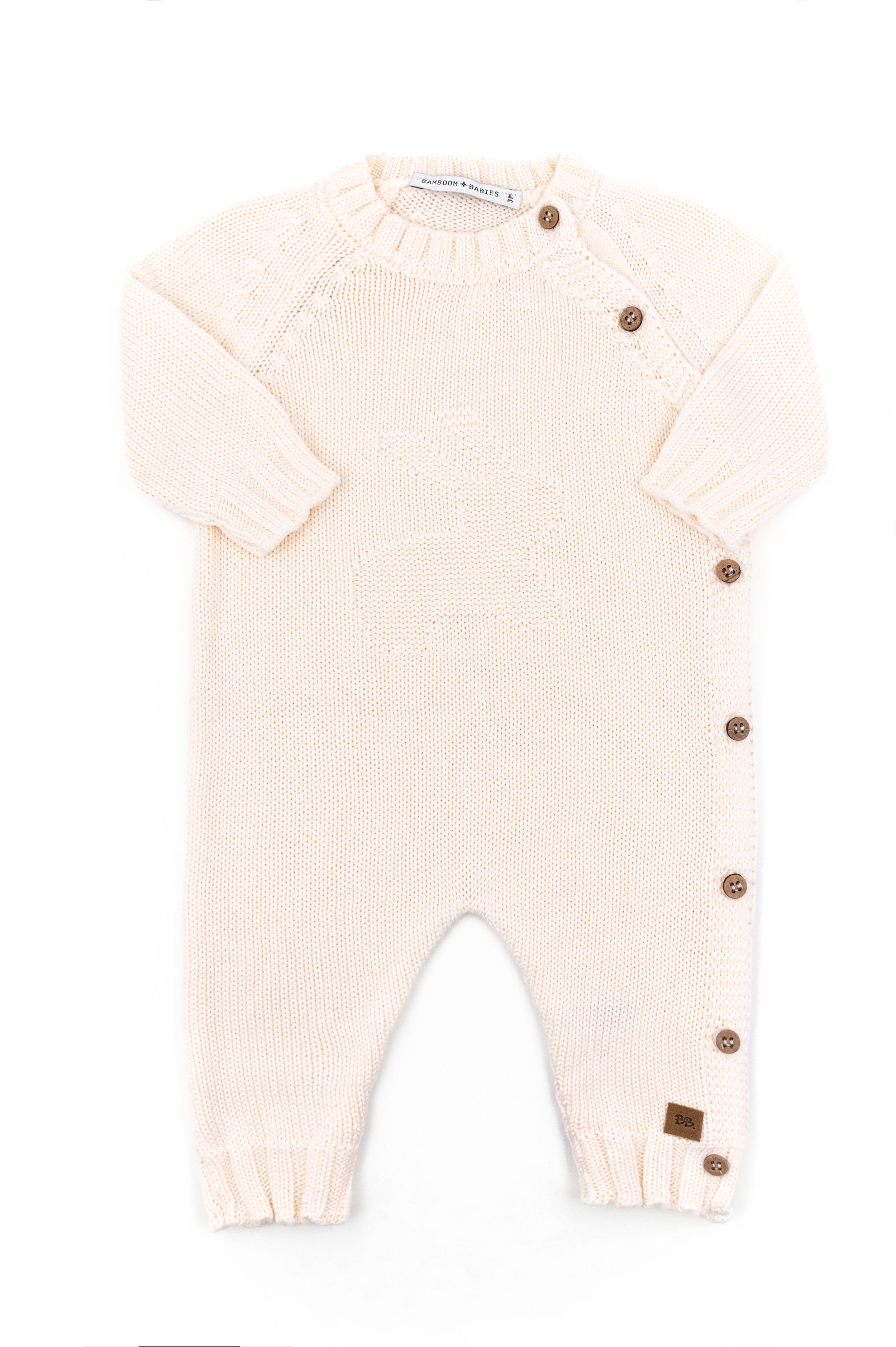 La lavorazione a maglia dona un aspetto raffinato, mentre il dettaglio del coniglio in rilievo aggiunge un tocco giocoso e dolcissimo. Il design è pensato per garantire libertà di movimento e massimo comfort dalla nascita fino ai primi mesi.